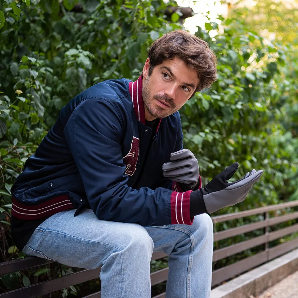 Avis aux cyclistes et autres citadins qui bravent la pluie et le froid en hiver : voici des gants conçus spécialement pour leur résister. Le must ? Le bout des doigts tactile qui permet d’utiliser son téléphone (et de tapoter) sans jamais les enlever. Fins et élégants, ils sont dotés d’un élastique au poignet qui empêche le vent de s’engouffrer au contact de la peau. Le dos de la main est protégé par un revêtement imperméable. La paume, quant à elle, est fabriquée avec un tissu plus souple (pour mieux épouser le guidon), déperlant. De quoi être au sec tout l’hiver.