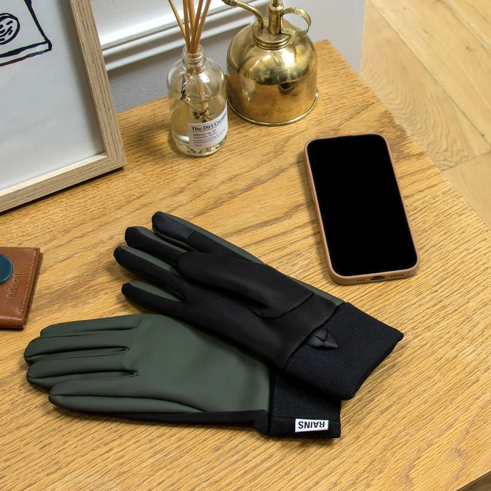 Une paire de gants imperméable et resserrée au poignet pour être au sec et au chaud. Le bout des doigts est compatible avec les écrans tactiles.