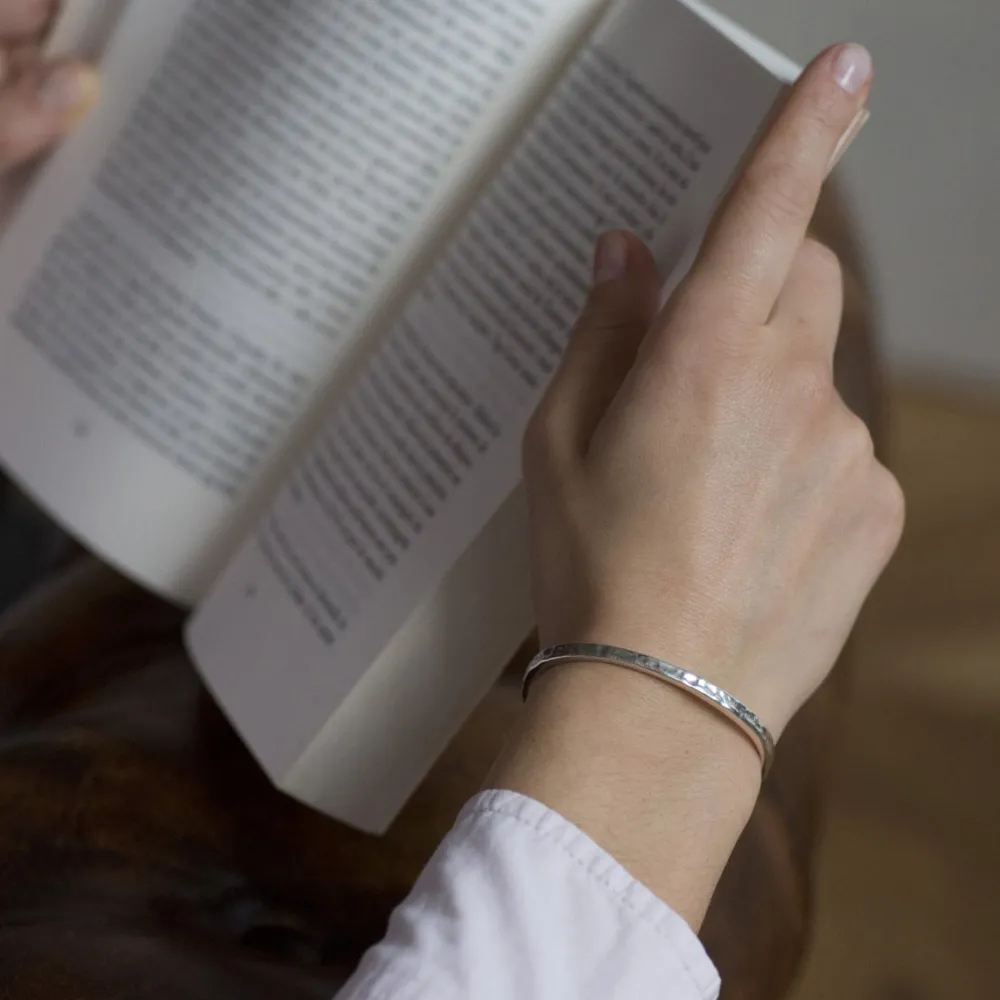 Un jonc fin ajustable, martelé doré ou argenté.