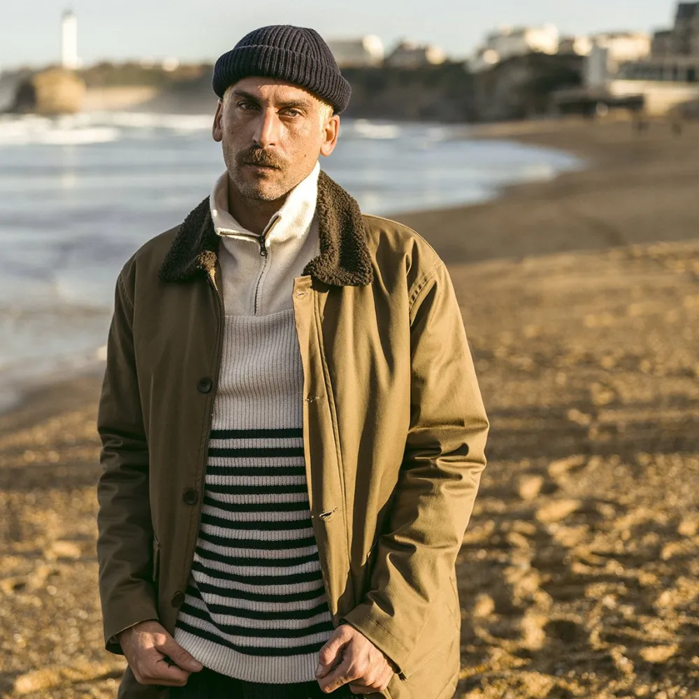 Pour cet hiver, on garde la tête bien au chaud avec ce modèle en laine extra-fine. Sur l’étiquette extérieure, on retrouve notre cher marin d’eau douce dessiné par l’artiste chilienne Daniela Garreton. Côté style, on aime ses larges revers pour un effet cool et décontracté. Allez hop, dans le dressing !