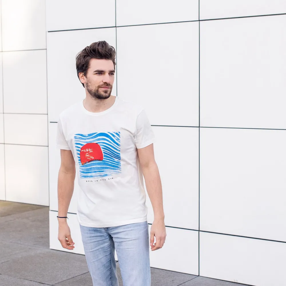 Un t-shirt en jersey de coton, 100% biologique, coupe droite et col rond. Conçu au Pays Basque et fabriqué au Portugal.